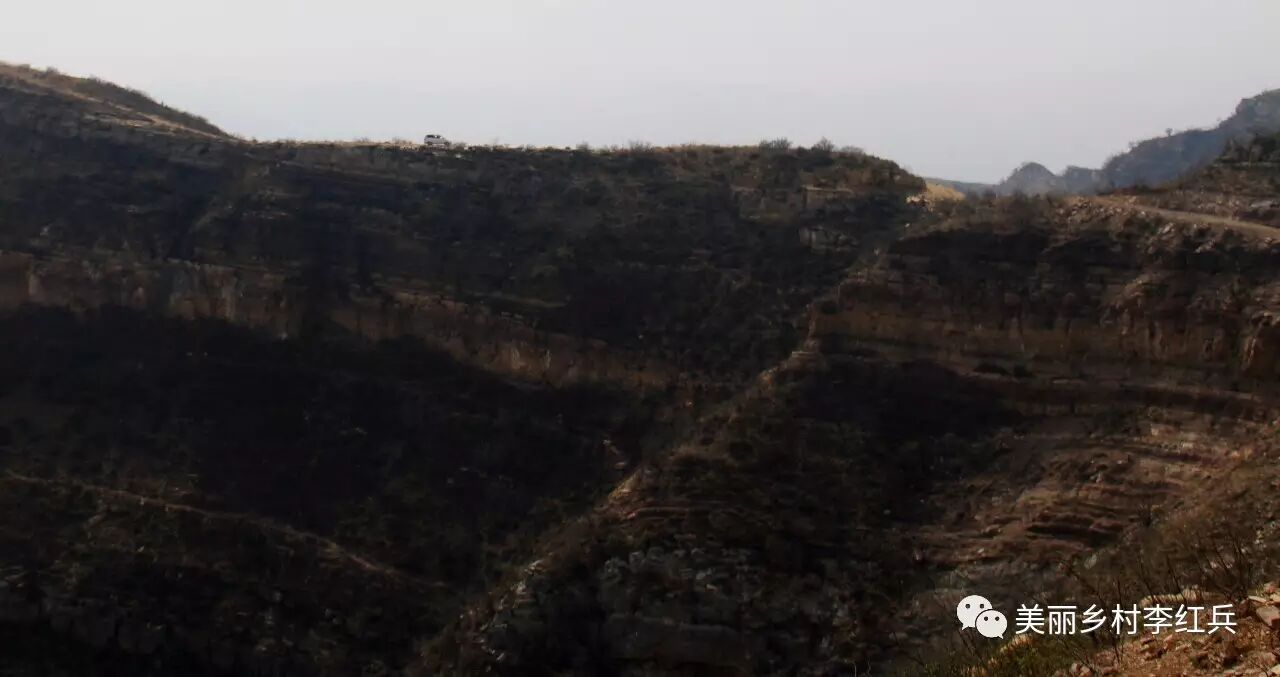 通往孙家寨的这条路的左侧是一条蜿蜒的山路,顺着山路才能到达孙家寨的位置。大家一路前行,想象着孙家寨的模样。据介绍,要站在图中车辆的位置才能够看到孙家寨的全貌。