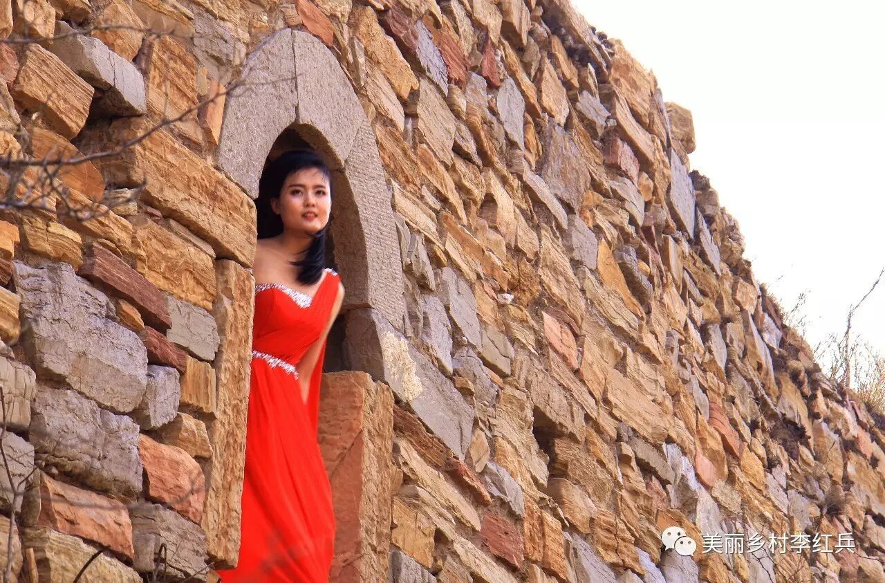 穿着红色长裙的模特在这里仿佛是虚幻历史长河中的一粒红尘,站在荒芜虚幻的历史传说中,显得是那么耀眼夺目。曾经隐居在这里的人可能在来这里之前,见过的红尘极多,他们也可能压根就没想到能够到这样的一个地方,聊度余生。难道,人生真的是像这样的了却凡尘,度尽苦厄才是他们的命运吗。很多的历史叩问都没回答,可能后人的评价就像这首诗一样,在这里显示一下,风雨和日出后会将这里的痕迹一一擦拭掉,恢复往日的静寂和荒凉。