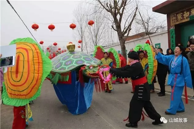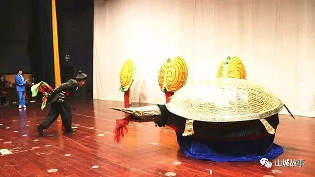这是2016年五月时丰村金龟舞在参加“洛阳牡丹节全国非物质文化遗产民俗汇演”时开场的唱段,讲述了古代时丰村勇士与蛤蚌仙子共同制伏金龟,保一方百姓平安的故事。这次演出汇集了来自全国许多著名的非物质文化遗产项目,可谓是群英荟萃,但咱们山城时丰的金龟舞却脱颖而出,闪亮登场,引起了轰动。原生态、思想艺术性强、观赏性强、场面宏大、震撼人心,这是在场的专家和观众的评价。