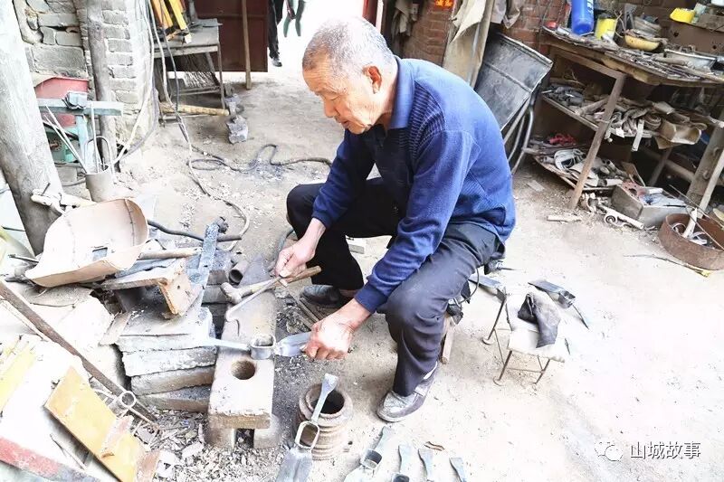 他现在主要是生产农具,䦆头、镐头、锄头等,有些人还偏爱这些手工制作的农具,顺手还耐用。