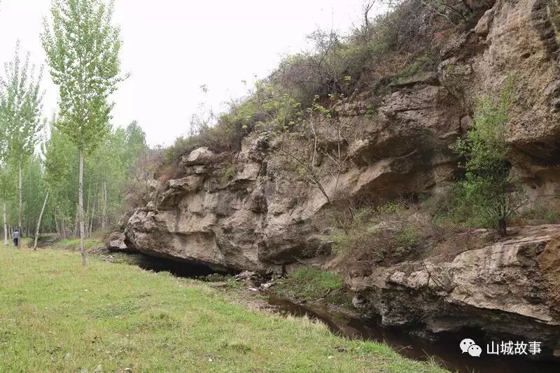 在时丰村南的羑河河滩上,有一处奇特的天然景观,崖壁上有一石窟,石窟内有一石床,石床上还有人睡觉枕过的痕迹,当地人叫做“石炕儿”。