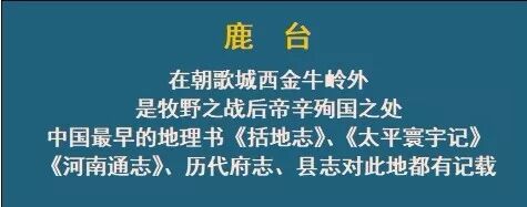 鹿台,在朝歌城西20里。对此,历史文献有大量的记载,还有碑刻、地名等文物佐证。
