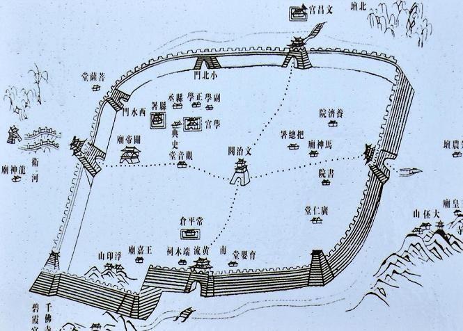 今日浚县城非昔日黎阳城,昔日黎阳城非古时黎阳城。古时黎阳城汉代位居大坯山北麓,卫水西侧。因水患而成湖,遂移城至浮丘山巅。黎阳城历经置州置郡,明洪武三年降州为县,移城于浮丘山东北麓,绕南、东、北三面构筑城墙,城西以卫河阻险。明正德五年,增筑西城墙,抵浮丘山而至。因登山鸟瞰城内尽望,故于明嘉靖十一年跨浮丘山峦拓筑西南城隅。明万历二年,围半壁浮丘于城内重筑城墙,终成昔日黎阳城。