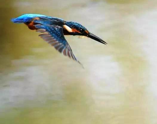 我喜欢徒步行走淇河,几乎每一个周末,都会和风景秀美的诗歌之河来一次亲密接触,感受母亲河一年四季不同的情感变幻。对翠鸟是不陌生的,在水之滨、岸边树上、灌木丛丛间,几乎时常都能够看到它们。前年的初冬,湿地公园西段,曾经有幸目睹过翠鸟捕鱼的精彩画面:碧玉般的淇水潺潺的流动着,似有似无的水雾飘散在广袤的河面,草枯绿尽,只有水中的水草还暗绿一片,悠闲地随着水流波动。风吹动着芦苇,白色的芦花似一团团玉雪,远处的渔舟划动着刚刚谢幕的秋色,两只翠鸟站在靠近岸边的芦苇上一动不动,蓝色的羽毛在风中微闪。一只俯首向下两眼直视水下,待锁定的目标进入了预定的水面,它迅速凶猛的直扑水中,用嘴捕获了一条小鱼;另一只翠鸟则在前面那只翠鸟俯冲的一瞬间飞向五六米的高空鼓翼盘旋,旋停半刻、迅捷的扑向水面,穿越流动的河水向下捕获游动着的鱼虾。翠鸟扎入水中后,还能保持极佳的视力,我看到它的眼睛进入水中后,迅速调整着水中光线造成的视角反差,双爪收拢又迅速后蹬,长长的角喙和身体几乎成一直线,之后箭一般的冲向目标。
