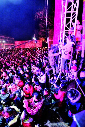 淇河晨报讯(记者 张志嵩)舞狮、广场舞、变脸、武术、钢琴……2月4日晚,浚县伾山街道办事处杨玘屯村文化广场上笑声不断、掌声不停,该村村民自编自导自演的“春晚”华丽上演,本村和外村3000多名观众到场观看,200多名演职人员用一个个精彩的节目为父老乡亲献上了一场热闹的混搭“春晚”。