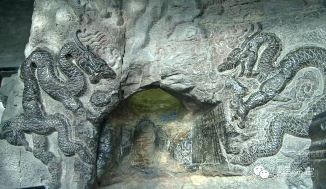 “龙洞深幽石罅连,白云出岫升山巅。适逢雷公电母至,五龙吐云升祥烟。”此景在大伾山顶东北侧丰泽庙(现名龙洞)中。庙中崖壁上有上、中、下三个天然洞穴,上洞最大,可容人匍入,洞深莫测与山顶隙罅相连。崖壁上有精致雕刻的五条滚龙,俗称“滚龙壁”。据民间传说,古时有五条神龙居住在龙洞之中,每逢大雨降临时,五龙就会吐出云气,向天空飘扬,故称“龙洞吐云”。现在龙洞崖壁上存有的五条滚龙图案就是五条神龙去后留下来的化影。