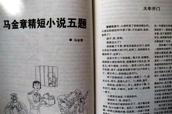 《解放军文艺》2004年第6期以《马金章精短小说五题》为题一次推出我5篇小说,《大年开门》为其一,责任编辑为李亚老师。