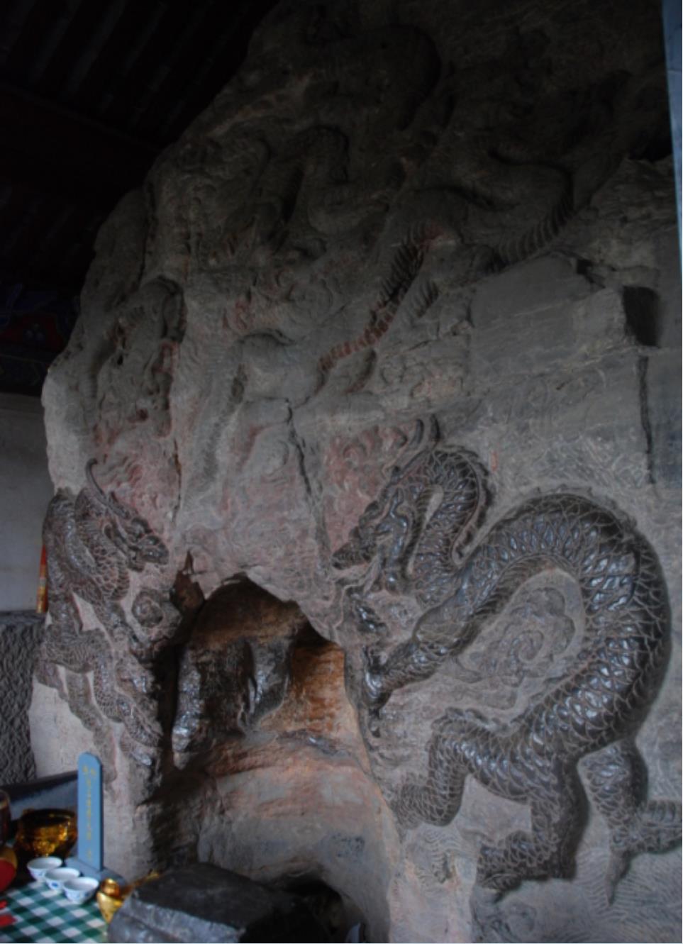 除了大佛以外,大伾山的龙洞也很值得一看,它位于山顶附近,实际上就是一眼泉水。北宋时可能非常吃香,因此皇帝在这里封它为“康应候”,大书法家米芾也写了个康应候碑,泉水口附近也雕了五条龙围起来。或许,这就是市场经济繁荣的北宋所创造的一个旅游景点?看到之后也相信了,北宋的龙也能够雕得这么生动饱满,特此贴图,可不能被晋祠圣母殿的四脚蛇毁了形象啊。