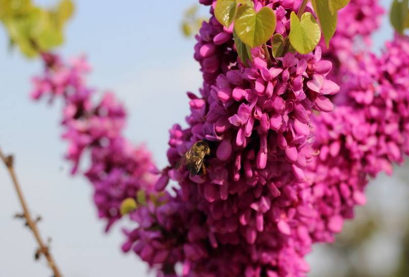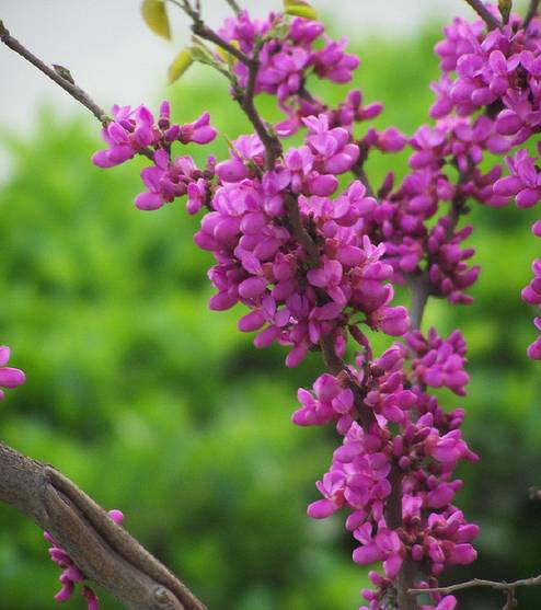 俗称“满条红”,花紫红色或粉红色,2-10余朵成束,簇生于老枝和主干上,尤以主干上花束较多,越到上部幼嫩枝条则花越少,通常先于叶开放。