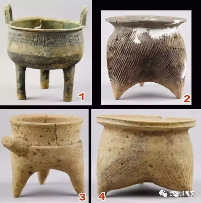1.铜鼎 2.瘪裆鬲 3.斝形鬲 4.盘口鬲
