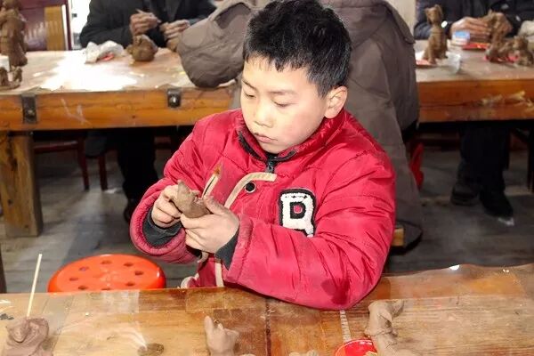 小院里圆圆的大桌子成了孩子们玩泥巴的好地方,也许他们还不太懂泥塑这门手艺背后需要付出的艰辛,但是每天的耳濡目染绝对是最好的老师。