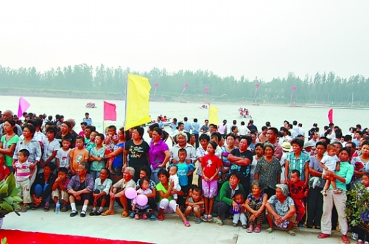 村民像过年一样来观看高村橡胶坝工程竣工庆典。