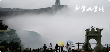 云雾从山腰升上来了,大片的云雾跨过沟壑,穿越丛林,沿着悬崖绝壁一路攀援而上,吞没了沿途经过的所有东西,山脚下的村落,道路不见了,生长在崖壁间的树木不见了,山顶上开着星星点点的小黄花的小灌木丛也不见了。很快,周围的一切都失去了颜色,只有一片灰蒙蒙的云雾向四处弥散开来。东南角的悬崖顶上有一处新建的三重楼阁,名曰南天门,此时也已被云雾环绕,随着云雾的不停飘动,南天门也若隐若显,犹如天宫一般。静坐其间,使人不觉也恍恍有居然天上客之感。