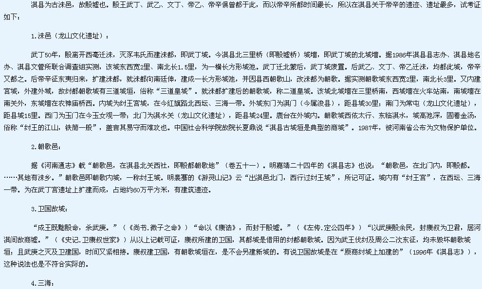 纣都朝歌,载诸史册,《淇县志》有详述焉。除《史》、《志》外,在淇县,有关纣王的传说,说不胜说;有关纣王的遗迹,比比皆是。纣都朝歌,奚复何疑?然自《竹书》出土,甲骨发现,《说殷》问世,始有异说:《竹书》说:“自盘庚徙殷,至纣之灭,二百七十三年,更不徙都。”王国维说:“洹水南之殷虚”,即“盘庚以来殷之旧都”。我国学术界遂多从此议,虽有少数学者主张纣都朝歌,但也不能挽狂澜于既倒。从而《竹书》“更不徙都”之说,相沿风靡于世,而纣都朝歌说,遂湮没无闻,人鲜道及矣!想不到汲郡古墓里的一把竹签,竟能改变历史的本来面目,其魔力之大,可谓无与伦比矣!然历史的实际,却依然闪烁其真理的光芒,启示着人们勇敢地继续去探索。(《甲骨学通论》)在“纣都问题”的讨论正在“深入进行中”,愿和大家一道把“纣都问题”的讨论继续深入下去,以期在讨论与争锋中,能把扭曲了的历史予以复原,还历史以本来面目。