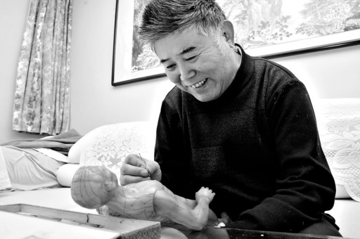 李鸿锷从7岁起便开始练习扎针,起初他拿着针在地上、在枕头和胶泥块儿上试扎。